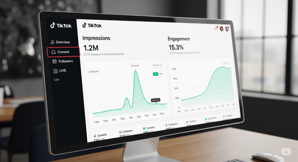 TikTokには、インプレッション数(視聴回数や表示回数)やエンゲージメント率(いいね、コメント、シェアなど)を詳細に確認できるアナリティクス機能(データ分析ツール)があります。