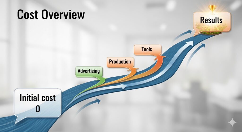 TikTokビジネスアカウントは、基本的に無料で開設できますが、企業が本格的に活用する場合には様々なコストが発生します。