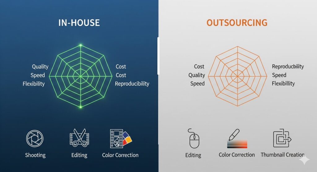 動画コンテンツを制作する際のコストは、内製と外注の選択肢に分かれます。